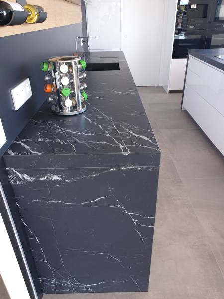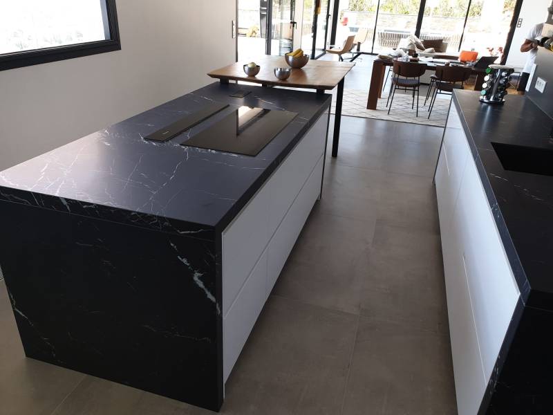 Ce matériau se prête particulièrement bien aux projets de plans de travail, de salles de bain ainsi que pour des éléments décoratifs. La céramique Elegant Black peut être utilisée pour apporter une touche d'élégance dans des espaces comme des salons, des cuisines, ou des salles de bains. Grâce à sa résistance à l'usure et son esthétique intemporelle, elle s'impose comme un choix privilégié pour des projets de décoration durable et raffinée.