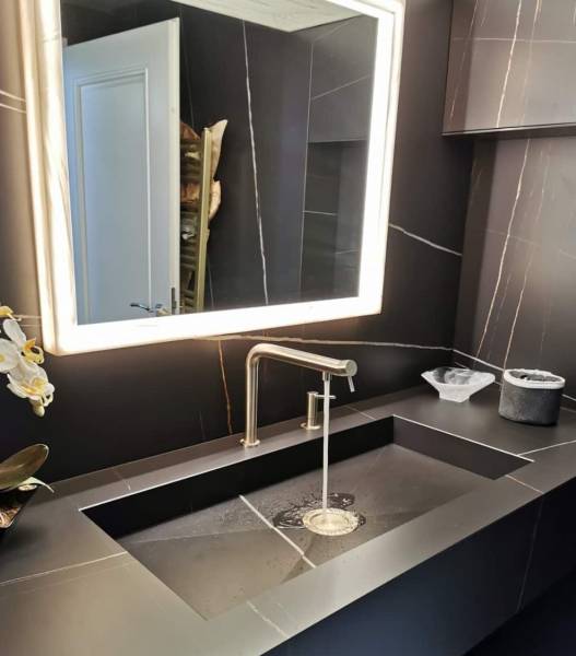 Ce qui distingue la céramique Azalai, c’est sa capacité à conserver son éclat au fil des années. Son esthétique et sa finition brillante lui permettent de garder son apparence élégante même après une longue période d'utilisation. Ce matériau ne se contente pas d’être beau ; il est conçu pour résister à l’épreuve du temps, garantissant ainsi une solution à la fois esthétique et pratique pour l’aménagement de votre salle d'eau. Élégante, intemporelle et d’une grande robustesse, la céramique Azalai est l'élément clé pour créer une salle d’eau moderne, chaleureuse et accueillante, tout en apportant une touche de luxe discrète à votre quotidien.